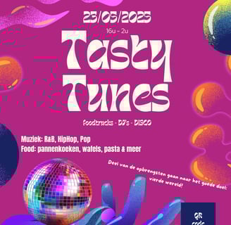 Dit is nog maar het begin. We hebben veel meer verrassingen in petto voor de avond. Houd onze kanalen in de gaten en bereid je voor op een ervaring die je niet snel zult vergeten. Dit is niet zomaar een event β Tasty Tunes is het moment om muziek, food en vrienden te combineren voor de perfecte avond uit!